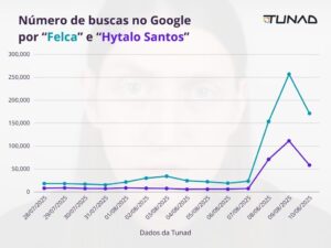 Segundo dados da Tunad, o impacto foi imediato e massivo, refletindo-se no volume de buscas no Google por Felca e Hytalo Santos nos dias seguintes à postagem.