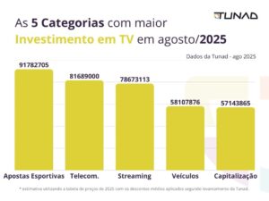 A seguir, o panorama de agosto/2025, dividido em três blocos: Investimento em Mídia, Inserções Comerciais e os principais destaques do mês.