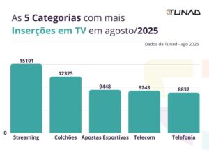 📺 O perfil das categorias mudou bastante: Medicamentos e Sites/Aplicativos, destaques de julho, ficaram fora do Top 5 em agosto.