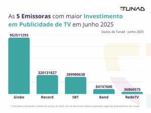 A seguir, os destaques de junho de 2025 divididos em três frentes: Investimento em Mídia, Volume de Inserções e Emissoras.