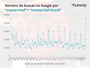 👉 O estudo da Tunad reforça que medir engajamento por buscas concretas no Google permite acompanhar em tempo real a intensidade do interesse do público, fornecendo métricas claras de impacto para marcas e anunciantes que associam sua comunicação ao MasterChef Brasil.